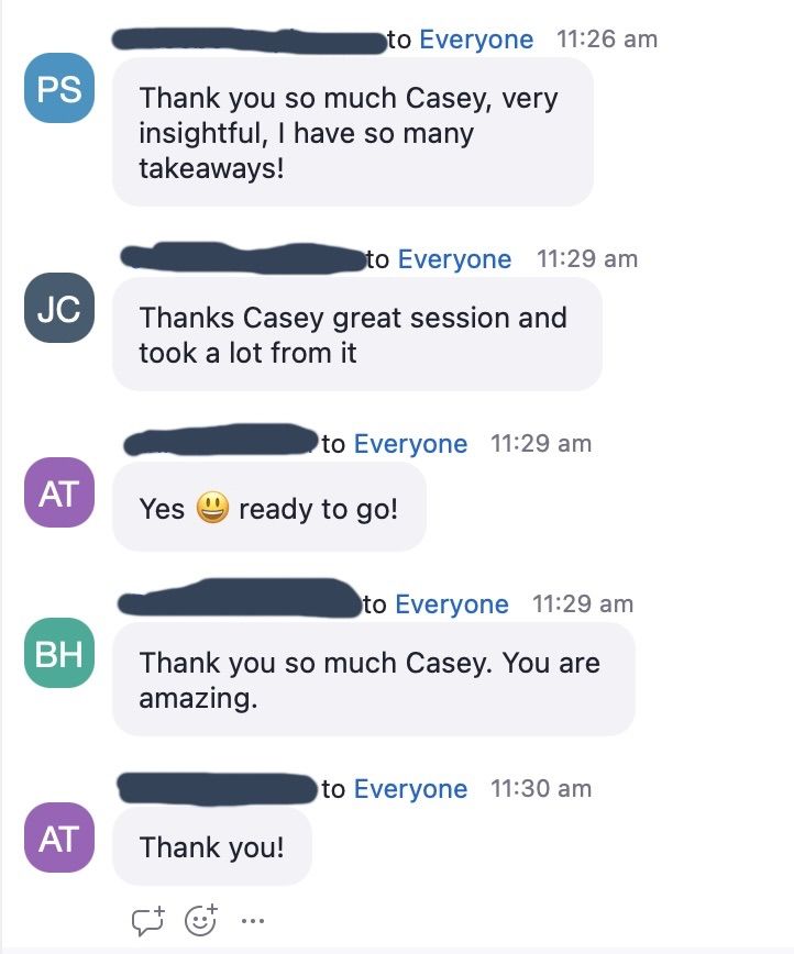 "This week was a fantastic dip into crafting my talk with clarity and confidence. I felt so inspired (and safe!) every step of the way. I learned so much – and had fun doing it!"